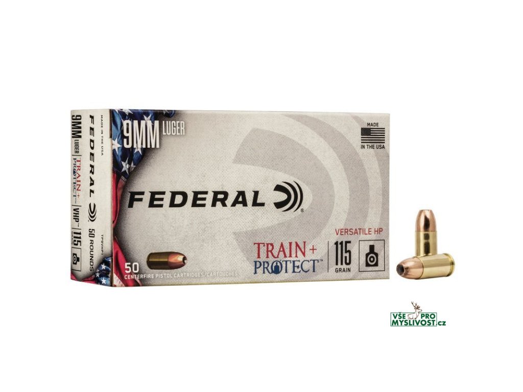 Náboj kulový Federal, Train + Protect, 9mm Luger, 115GR (7,5g), VHP
