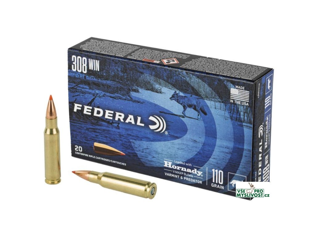 Náboj kulový Federal, Varmint and Predator, .308 Win, 110GR (7,1g), Hornady V-MAX