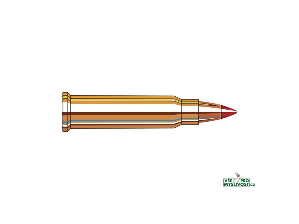 Zlacený kovový plášť, speciálně navržené olověné jádro a polymerová špička společně vytváří expanzi směrem ven a vedou k rychlé fragmentaci střely V-MAX.