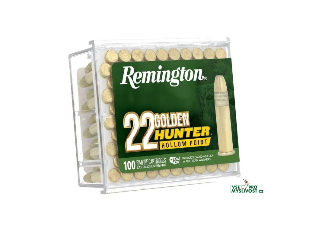 Malá zvěř, pozor — 22 Golden Hunter je připravena na zásah. Ať jde o veverku, králíka nebo škodnou až po kojota, 22 Golden Hunter spolehlivě expanduje pro rychlý přenos energie do cíle. Z pušky i pistole s okrajovým zápalem dutinová střela proniká do optimálních hloubek a funguje z libovolné délky hlavně na běžné lovecké vzdálenosti. Remington .22 Golden Hunter – .22 LR HP střela pro drobnou zvěř, vysoká přesnost a konzistentní výkon, balení 100 ks. Zlatý standard lovu s okrajovým zápalem