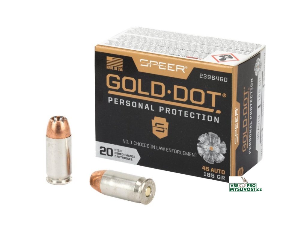 Náboj kulový Speer, Personal Protection, .45 ACP, 185GR, Gold Dot