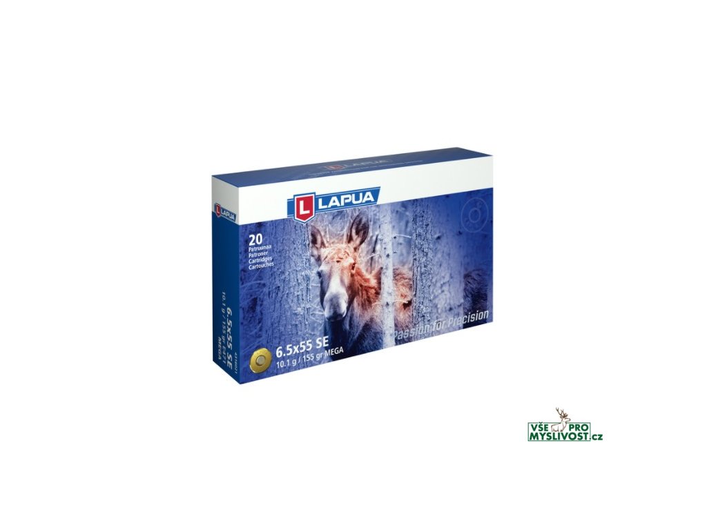 Střela Lapua Mega – střela určená pro lov má olověné jádro chráněné měděným polopláštěm. Specifické mechanické uzamčení jádra zaručuje kompaktnost střely až do okamžiku nárazu.