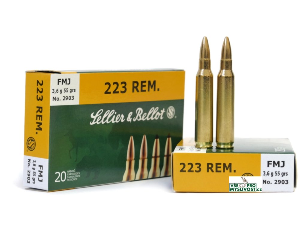 SB 223 Rem 2903 FMJ 3,6g Celoplášťová střela sestává z olověného jádra, které je překryto kovovým pláštěm. Vzhledem k pevné konstrukci vytváří střela hladký průstřel, neboť se nedeformuje při zásahu cíle. Používá se k lovu trofejové zvěře a při sportovní střelbě.