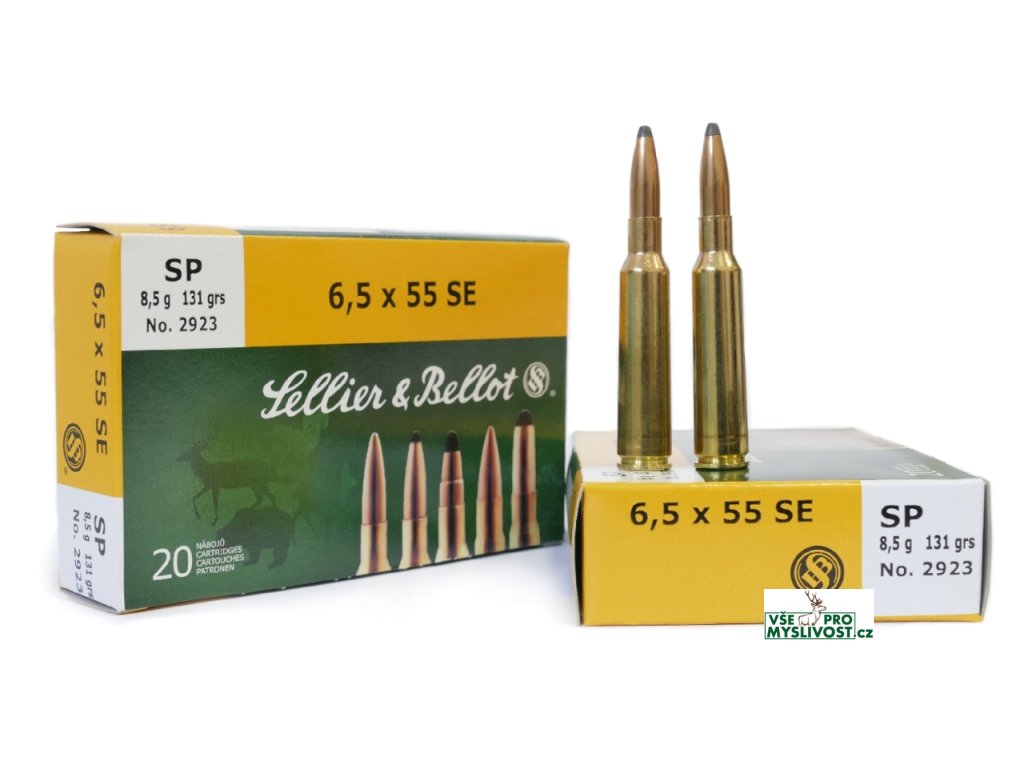 SB 6,5x55 SE 2923 SP 8,5g Poloplášťová střela sestávající z kovového pláště a olověného jádra. Je řešena tak, že olověné jádro, které je v přední části obnažené, se deformuje při zásahu cíle do hřibovitého tvaru, což zlepšuje její účinek. Je laborována u většiny typů kulových nábojů a podle ráže a hmotnosti je používána zejména k lovu spárkaté zvěře.