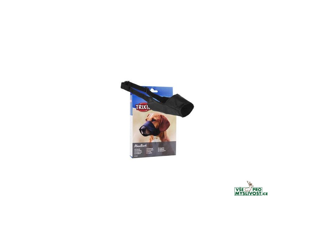 Ochranný nylonový náhubek s měkkým flaušem uvnitř, v černé barvě, použitelný k fixaci tlamy psa např. při veterinárním ošetření i jako běžný nahubek.