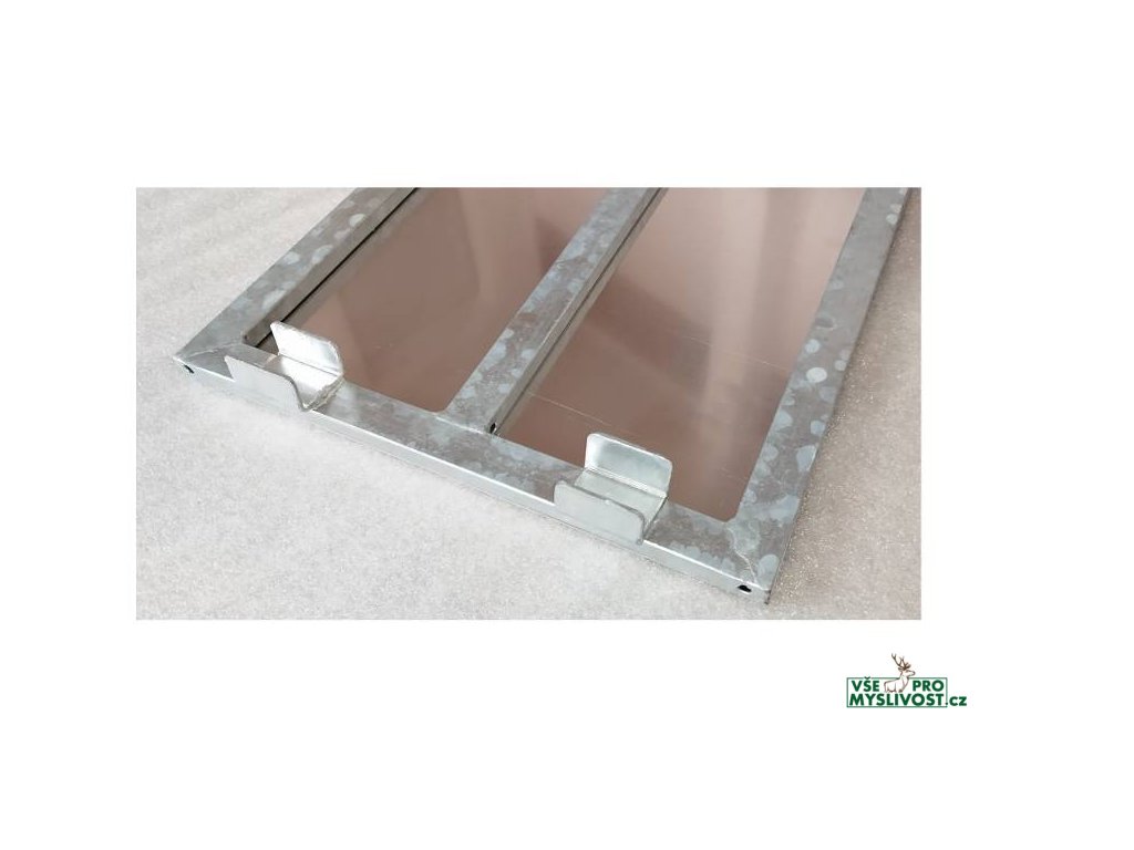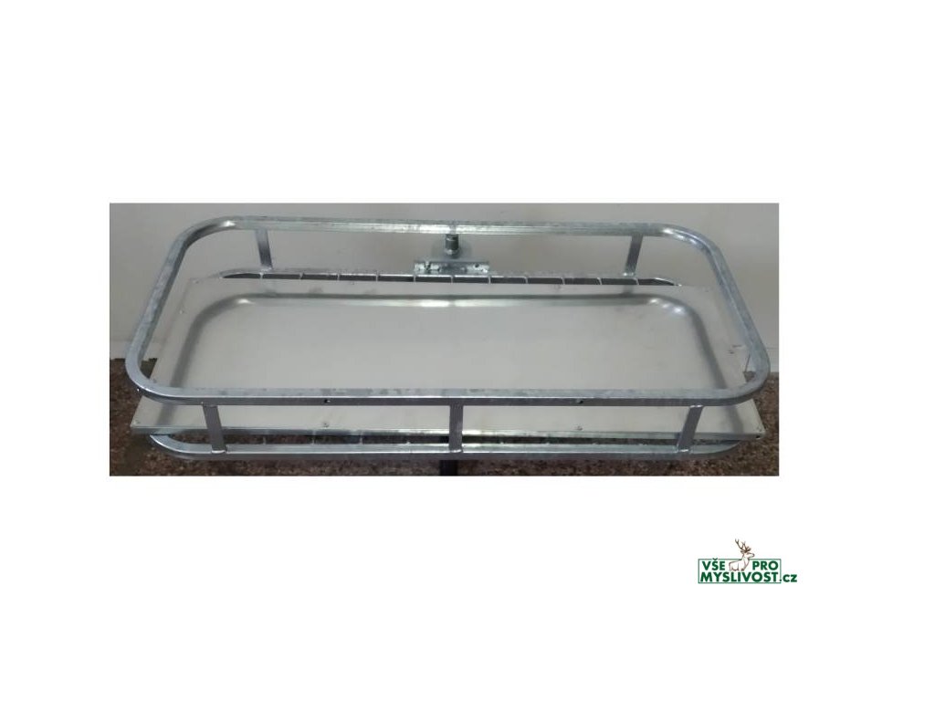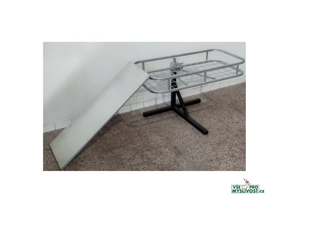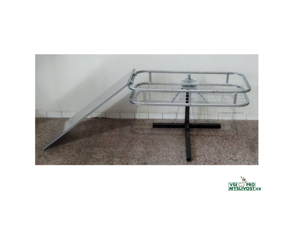 - Pozinkovaný plech na ocelové, žárově zinkované konstrukci se záchytnými packami slouží jako nájezdová rampa pro nakládku zvěře na nosič.
