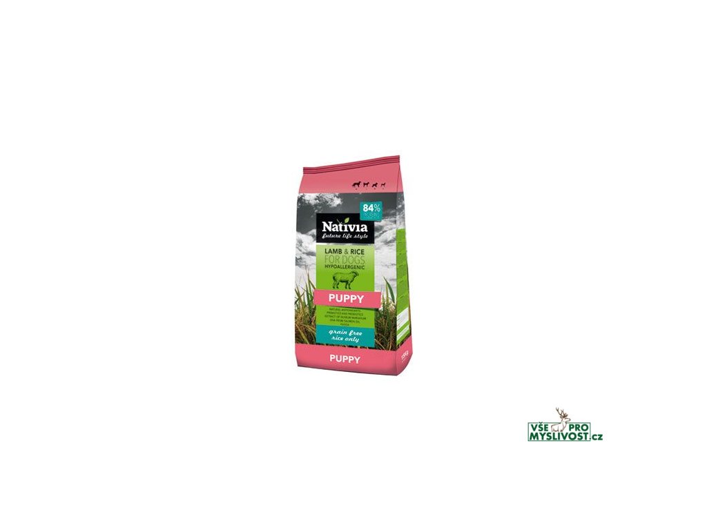 Kompletní hypoalergenní krmivo pro štěňata všech plemen. Velmi vhodné i pro jedince, kteří trpí zažívacími potížemi. Kombinace jehněčího masa a rýže je jednoduchá, velmi výživná, výborně stravitelná a zároveň chuťově atraktivní.Přednosti Nativie Puppy: