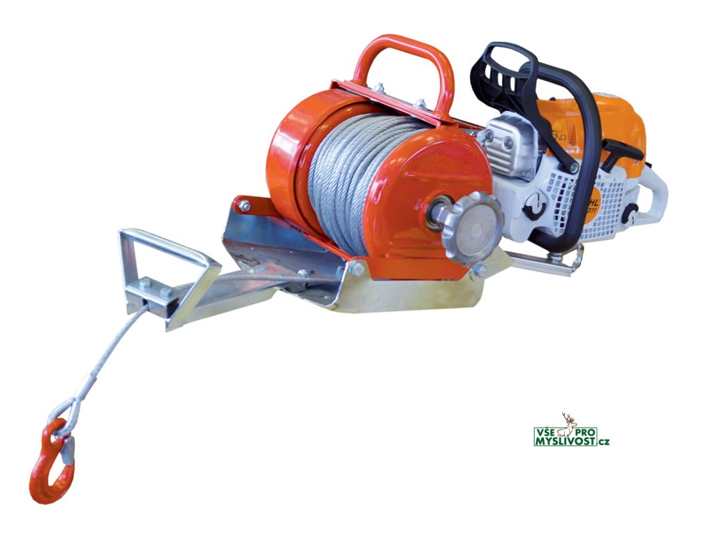 Malý, pevný a výkonný naviják s max. tažnou silou 1.200 kg, který se pomocí montážní soupravy snadno a rychle namontuje na motorovou pilu. Hmotnost bez pily je 27 kg, s pilou a lanem váží cca. 42 kg. Potřebný výkon motorové pily: od 3 kW (např. STIHL 038, 042, 044, MS440, MS441, 046, MS460, MS461, 048, MS640, 880)Cena včetně montážní sadyDodává se bez motorové pily a bez lanaNávod k použití