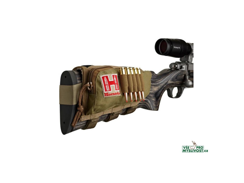Návlek na pažbu - lícnice Hornady s elastickým držákem na 5 nábojů a kapsou na zip, TAN