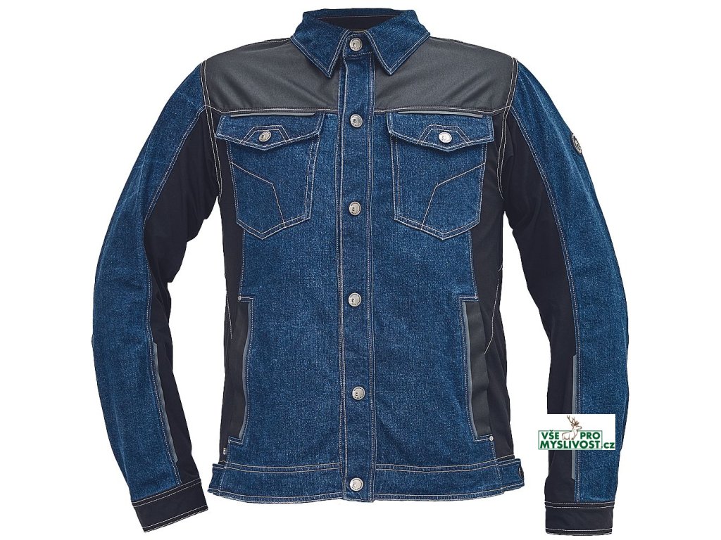 • pánská pracovní bunda jeansového vzhledu se zapínáním na druky • elastická předepraná Denim látka • materiál TRIFIBETEXPRO® a CORDURA® zesílení v oblasti ramen a rukávů • 2 boční kapsy • 2 náprsní kapsy na druk