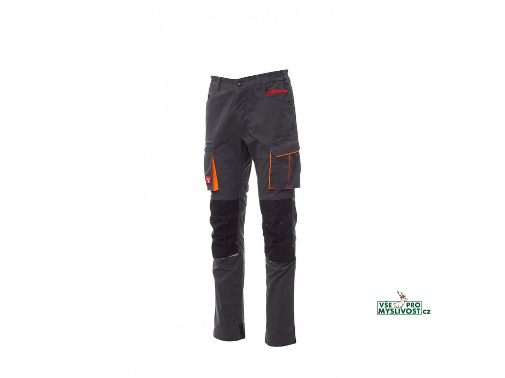 Unisexové kalhoty, stretch, celoroční, gumičky na bocích a poutka na pásek v pase, zapínání na zip a přizpůsobený knoflík. Na přední straně kalhoty mají dvě tvarované kapsy, na pravé straně kapsičku na mince a na levé straně bezpečnostní kapsičku na zip. Na přední straně levé nohavice je kapsa s klínkem, klopa na suchý zip a pouzdro na jmenovku. Na přední straně pravé nohavice je kapsička na telefon s reflexním lemem a kapsička s klínkem. Obě nohavice mají připevnění pro chrániče kolen z Nylon Oxford 500D, z kontrastní látky (s rozepínáním zezdola) a reflexní pásky, které signalizují rozepnutí. Na zadní straně je kapsa s malou klopou na suchý zip a kapsa bez klopy se 2 reflexními páskami, kapsička na svinovací metr (pravá nohavice), reflexní vložky ve výšce kolen (obě nohavice), patní chrániče z kontrastní látky (obě nohavice). Dále jsou přítomny: - prošívání trojjehlou v rozkroku, na vnitřní a vnější straně nohavic - kontrastní výztuže na různých místech. Italské prostřední velikosti 48-50-52 mají běžnou vnitřní délku nohavic 82 cm.