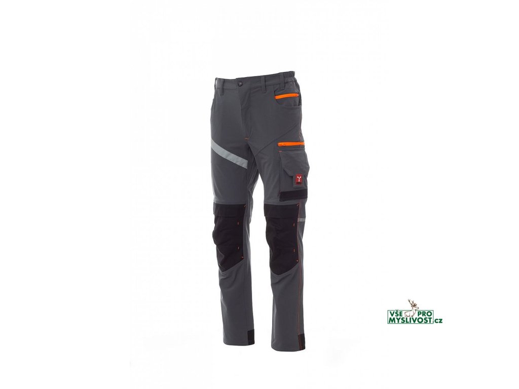 Unisexové kalhoty, látka „4 way stretch“, letní, gumičky na bocích a poutka na pásek v pase, zapínání na zip a přizpůsobený knoflík. Na přední straně kalhoty mají dvě zakulacené kapsy, na pravé straně kapsičku na mince a na levé straně bezpečnostní kapsičku na zip. Na přední straně levé nohavice jsou tři kapsy: vodorovná kapsa se zapínáním na zip, kapsa s tvarovanou klopou na suchý zip a pouzdrem na jmenovku, malá svislá kapsa se zapínáním na zip. Na přední straně pravé nohavice je reflexní páska. Obě nohavice mají připevnění pro chrániče kolen s rozepínáním seshora. Na zadní straně je kapsa s malou klopou na suchý zip a kapsa bez klopy se 2 reflexními páskami, kapsička na kladivo (pravá nohavice), otevřená kapsička na svinovací metr (pravá nohavice) a kapsička na telefon s klopou na suchý zip (pravá nohavice), reflexní vložky ve výšce kolen (obě nohavice), patní chrániče z kontrastní látky (obě nohavice). Boční prošívání a kontrastní výztuže na různých místech. Italské prostřední velikosti 48-50-52 mají běžnou vnitřní délku nohavic 82 cm.