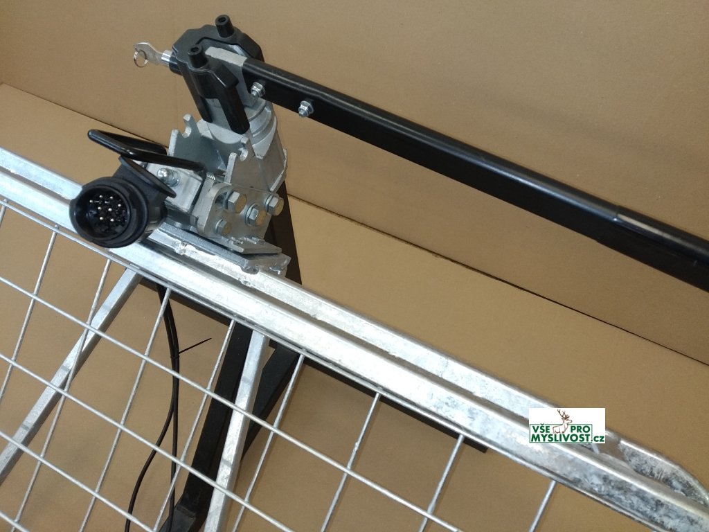 - Koš na zvěř + držák na tažné uzamykatelný, sklopný, rychloupínatelný, rozměr 1020x500x130mm , rozměr sítě je 75×75mm, žárově zinkovaný