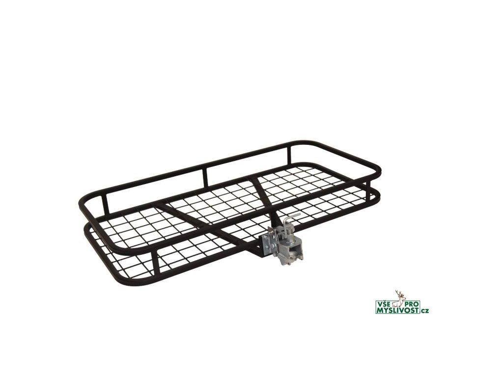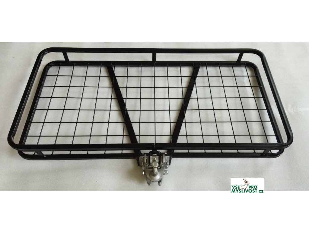 Nosič na tažné zařízení + šroubový sklopný držák (hlavice). Rozměr 1200x600x130mm, rozměr sítě je 75×75mm