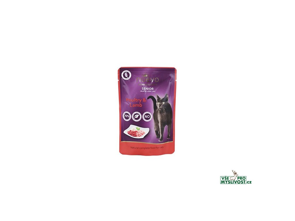 Kočičí kapsa Nuevo drůbeží a jehněčí s rýží je kompletní krmivo pro starší kočky všech plemen s jehněčím a drůbežím masem a rýží. Díky vysokému obsahu masa a přírodních surovin a žádnému obsahu umělých přísad, obilí a lepku patří toto krmivo do vysoce kvaliního a i ta nejvybíravější kočička si jej určitě zamiluje!
