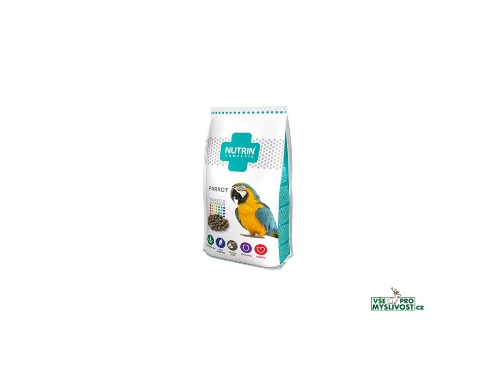 Krmivo Nutrin Complete Parrot je určeno pro každodenní krmení dospělých papoušků. Vzhledem k tomu, že někteří ptáci jsou velice vybíraví v tom, co jedí, přechod na nové krmivo nemusí být vždycky snadný. Veškeré změny stravy by měly probíhat postupně, s velkým zřetelem na tělesnou hmotnost, spotřebu krmiva, kondici a zdravotní stav jedince. V žádném případě by pták neměl hladovět. Doporučená denní dávka 3 - 5 g na 100 g tělesné hmotnosti by měla představovat zhruba 80 % z celkového denního příjmu potravy, zbývající část poskytuje prostor pro zelené krmení, zeleninu a ovoce. Zajistěte neomezený přístup k čerstvé vodě.