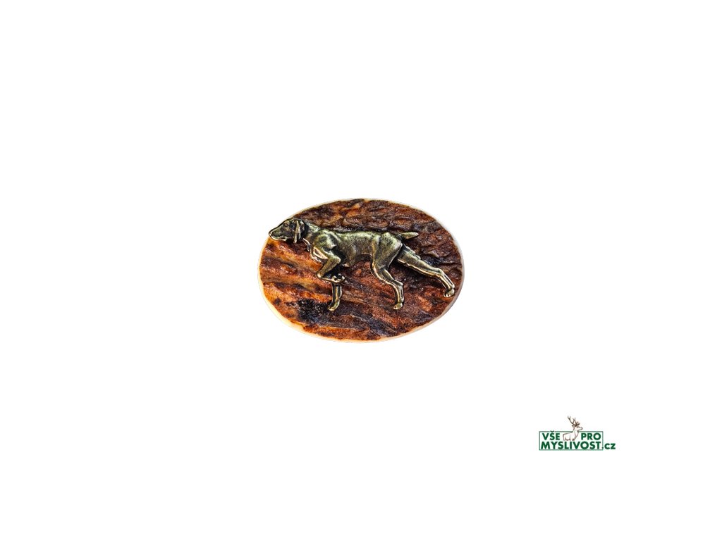 bolo z pravého parohu povrchová úprava motivu staromosaz bolo je včetně koženého pleteného řemínku, který je ukončen kovovými šiškami