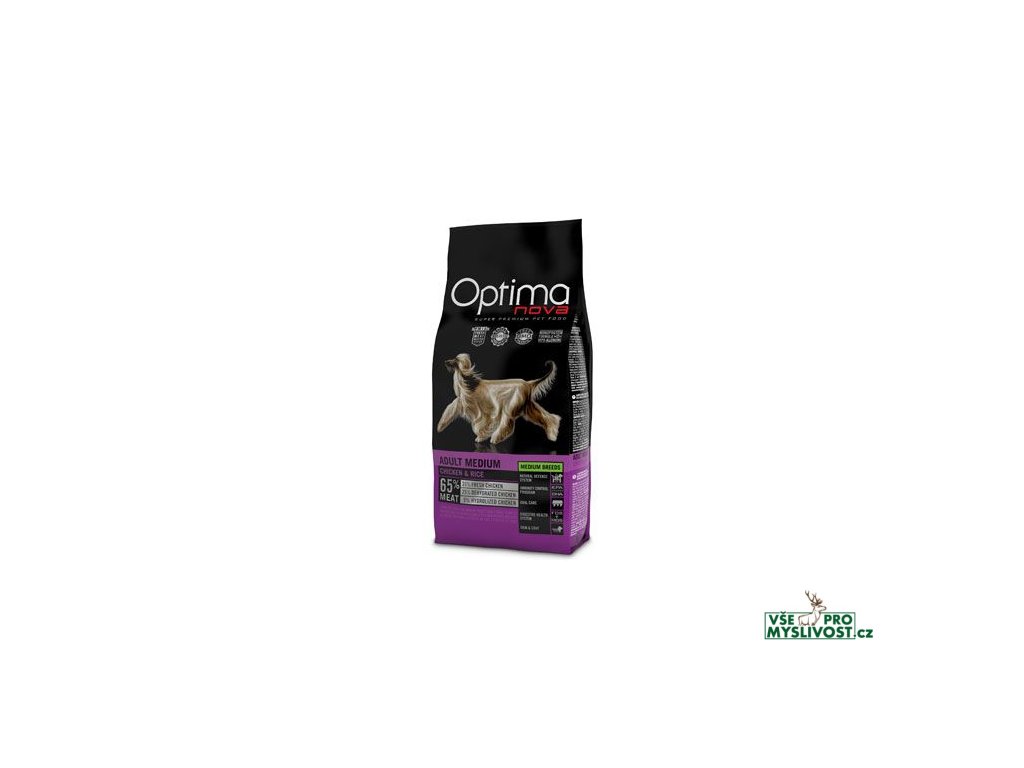 OPTIMAnova Dog Adult Medium Chicken & Rice složené z kvalitních bílkovin a lehce stravitelných sacharidů v kombinaci s prospěšnými tuky. Krmivo obohacené o vitamíny, minerální látky a antioxidanty.