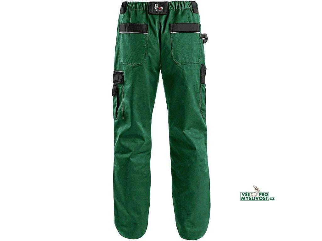 Pánské montérkové kalhoty, pas s poutky na opasek, vzadu do gumy, přední kapsy s poutky na nářadí, multifunkční kapsy na obou stranách, kolena zesílena 600D polyesterem s možností vložení kolenních výztuh, dvě zadní kapsy, jedna na suchý zip, reflexní doplňky. Doporučené použití: stavebnictví, strojírenství, lehký průmysl, automobilový průmysl, logistika, skladová manipulace, spedice, autoservisy, údržba, montáže, zemědělství, zahrada, hobby.