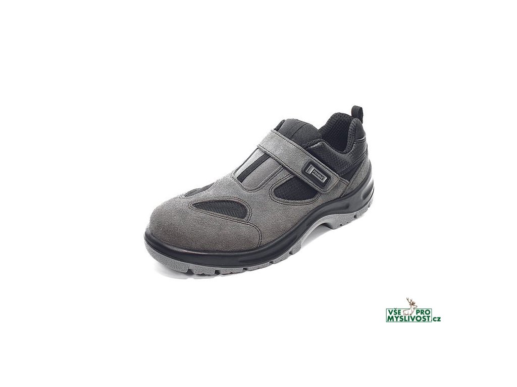 Bezpečnostní sandál s kompozitní tužinkou. PU/PU podrážka rezistentní olejům, absorpcí energie v patě, vysoká odolnost vůči uklouznutí. Svršek z broušené kůže.
