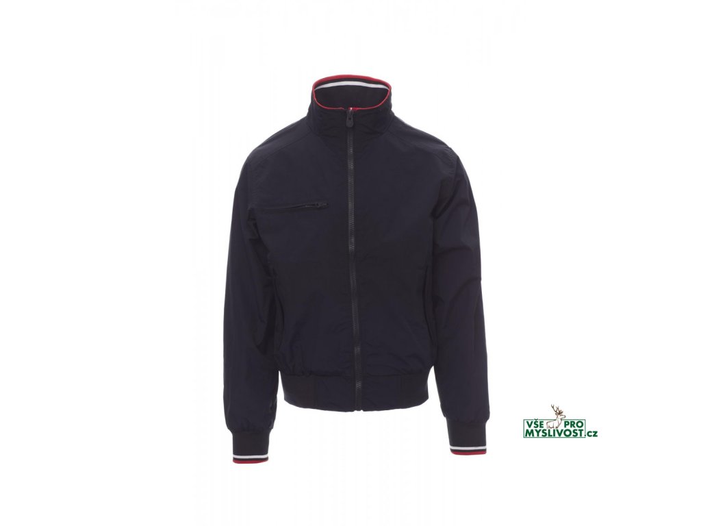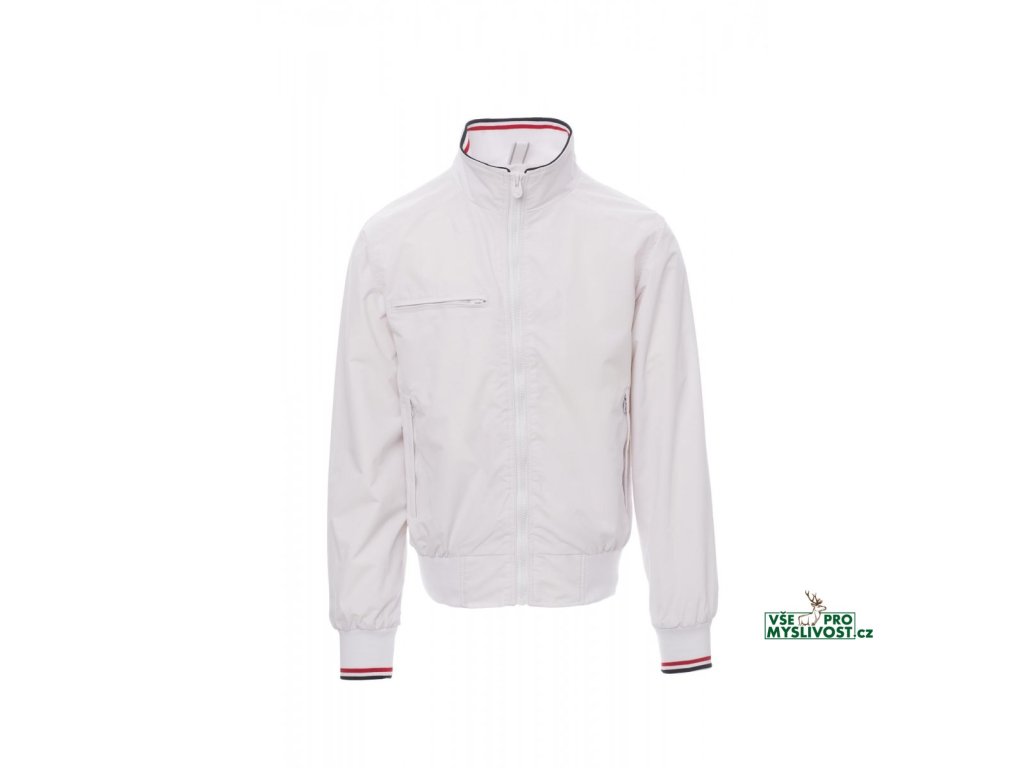 Pánská bunda s 8mm plastovým zipem s kovovým jezdcem, límeček, manžety a pas s elastickým žebrováním, dvě vnější kapsy s plastovým zipem. Vnitřek: nezateplený, síťkový, jedna kapsa na zip na smartphone s otvorem pro kabel, zip na hrudi a na zádech pro snadnější potisk a vyšívání.