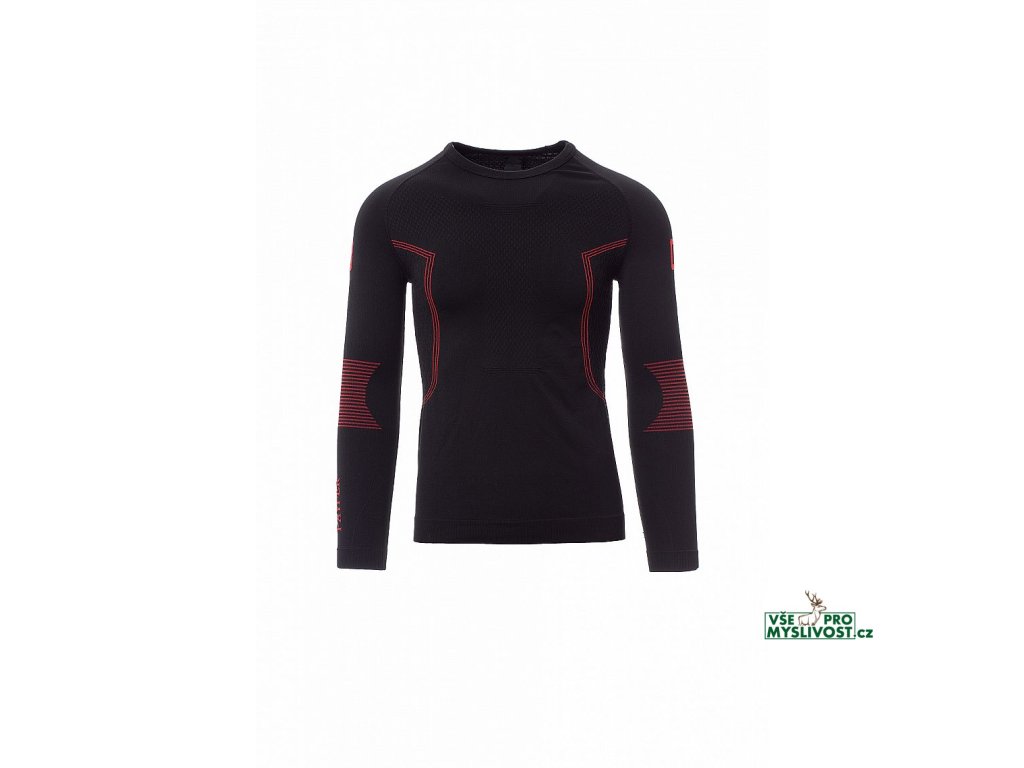 Pánské termo tričko s kulatým výstřihem a dlouhým raglánovým rukávem. Měkký strečový úplet, speciální textury na hrudi a na zádech, na bocích spirálové reliéfní motivy pro zajištění správné prodyšnosti a stálé termoregulace. Límeček, spodní část a lemy rukávů Zebrované ze stejného materiálu, pro větší pohodlí. Ergonomická tubulární struktura a speciální zdrsnění na loktech zajišťuje dokonalé přizpůsobení fyziognomii těla.