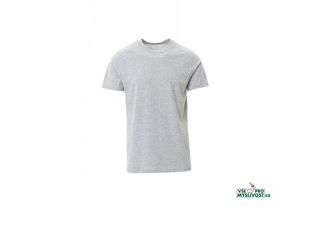 Pánské tričko s krátkým rukávem a kulatým výstřihem, 1,5 cm pružný žebrovaný lem ze směsi spandex u krku s vrchním prošíváním na přední straně, vyztužovací páska od ramene k rameni, pružné švy, postranní sešití. Neutrální bez etikety