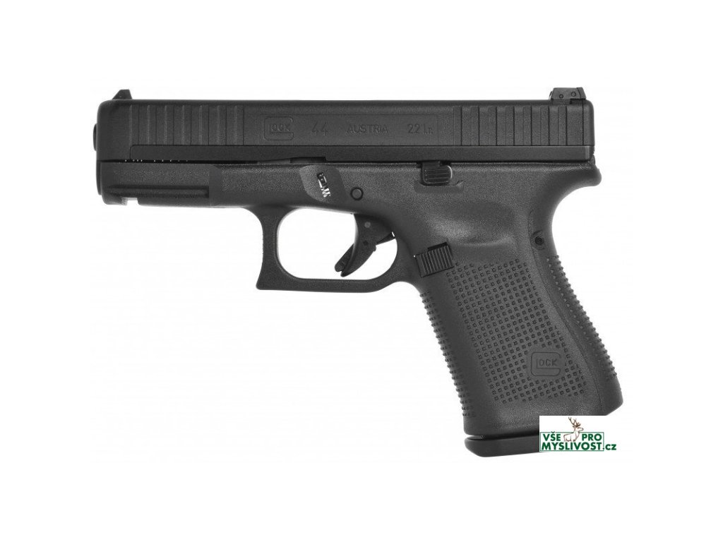 GLOCK 44 v ráži 22LR rozměrově vychází z modelu Glock 19 Gen5, takže nebude problém použít pouzdra a veškeré příslušenství pro tuto pistoli. Díky stejným vlastnostem spouště a totožné manipulaci jako u všech pistolí značky Glock lze dosáhnout správných návyků za zlomek nákladů. Zbraň je osazena hybridním polymer-ocelovým závěrem a dva standardně dodávané zásobníky mají kapacitu 10 ran. Parametry: hybridní polymer-ocelový závěr oboustranný záchyt závěru vypouštěč zásobníku je možné přehodit na pravou stranu pro ovládání levou rukou indikátor náboje v komoře hlaveň Marksman pro větší přesnost spoušť na kterou jste zvyklí z ostatních modelů Glock, pro zajištění stejného pocitu při tréninku 4 výměnné hřbety rukojeti dva zásobníky s kapacitou 10 ran stavitelná mikrometrická mířidla spodní rail na příslušenství FS - Front Serrations - přední zdrsnění závěru pro lepší manipulaci se závěrem Ráže 22 LR Délka závěru 174 mm Výška 128 mm Šířka 32 mm Vzdálenost mezi mířidly 158 mm Délka hlavně 102 mm Kapacita zásobníku (standard) 10 Hmotnost bez zásobníku 358 g Hmotnost prázdného zásobníku 57 g Odpor spouště ~2,25 kg Pojistky 3