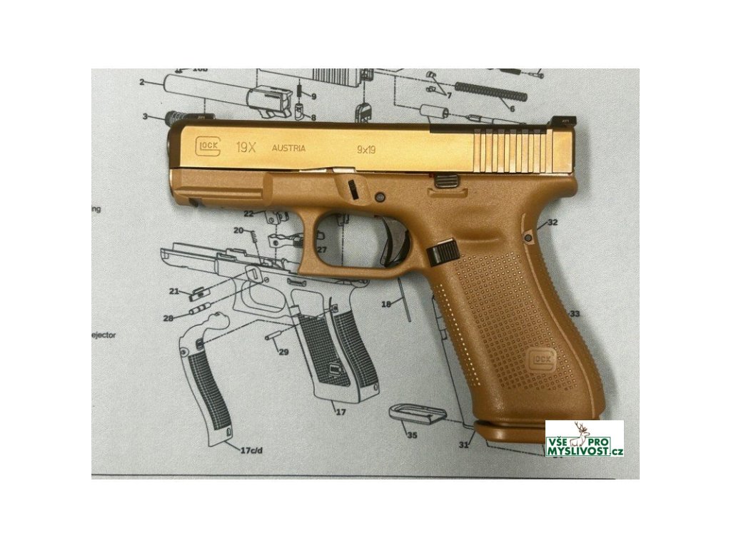 GLOCK G19X MOS v limitované edici, ze které bylo do České republiky dovezeno pouze 50 kusů. Oproti standardní verzi Glock 19X má verze 19X MOS jemnější a zlatější povrchovou úpravu a zásobníkovou šachtu stejnou jako zbraně Gen5 (lze tedy použít se všemi generacemi zásobníků). Pistole je osazena kovovými tritiovými mířidly a je dodávána se třemi zásobníky – 1× na 17 ran plus 2× 17+2 ran s botkou. Pistole mají novou povrchovou úpravu nPVD slide coating (Physical Vapour Deposition) v pískové barvě. Barva je aplikována pomocí naprašování a vakuového napařování. Oproti povrchové úpravě teniferací na předchozích generacích pistolí Glock vzniká při nanášení metodou odpařování z pevné fáze ultra tenká kombinace 2 µm vrstev, které se vyznačují: GLOCK G19X MOS – limitovaná edice (50 ks pro ČR)