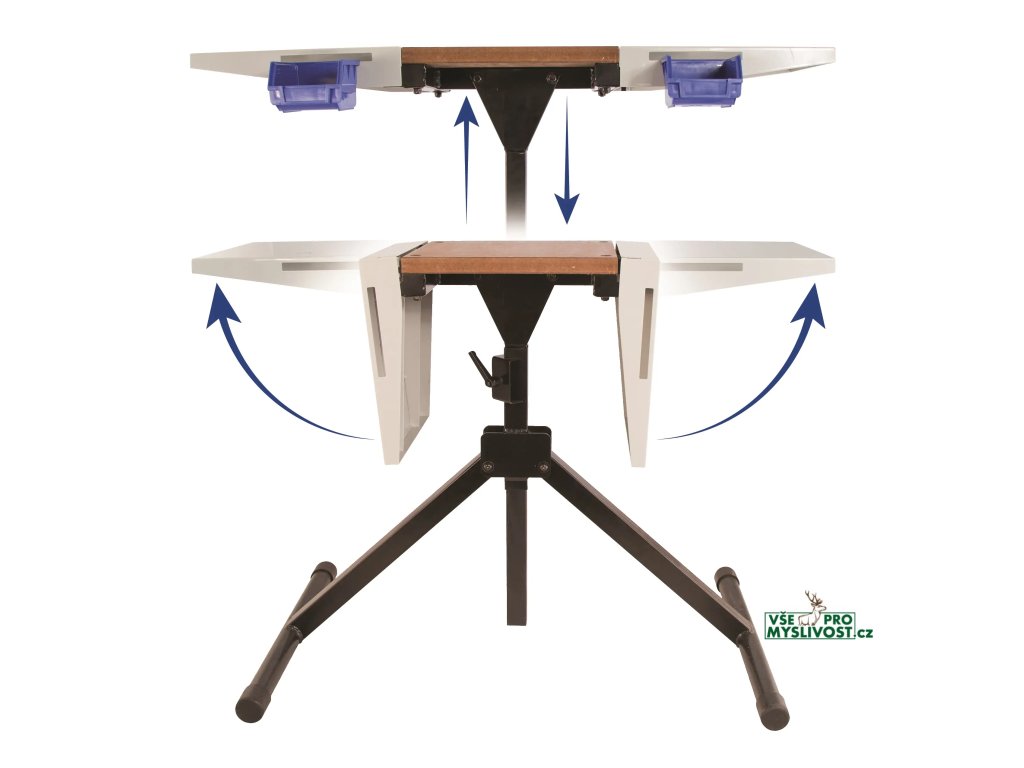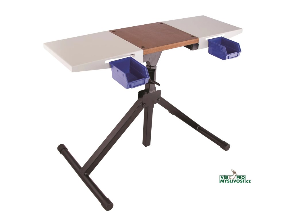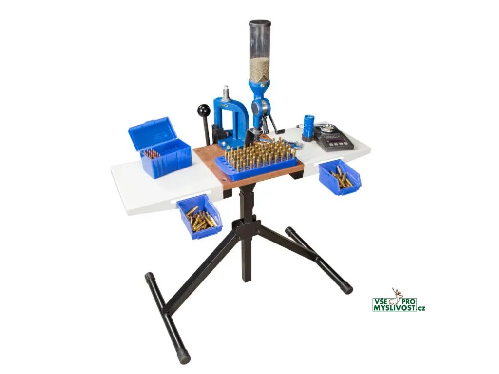 Stojan Frankford Arsenal® Platinum Series Reloading Stand je nutností pro každého, kdo má omezený prostor. Stůl a rám jsou sklopné pro uložení v kompaktních prostorech. Odolná dřevěná středová část je ideální pro montáž lisu, prachovače nebo jiného příslušenství, které vyžaduje montáž na pevnou podložku. Bočnice snadno pojmou jakékoli volně stojící příslušenství, jako jsou váhy, stojany na nábojnice, nebo téměř jakékoliv jiné příslušenství.