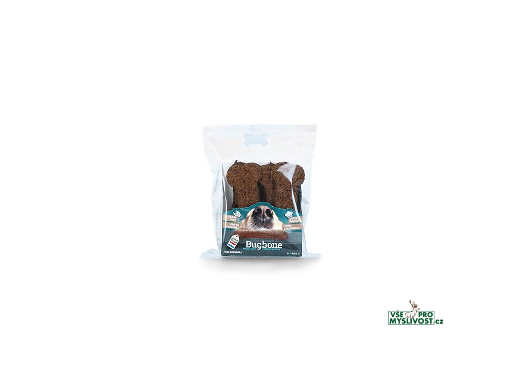 Bugbone také pomáhá čistit zuby vašeho psa a zajišťuje svěží dech. Riziko alergických reakcí je nulové. V kombinaci s nízkým počtem kalorií (pouze 157 kcal na 100 g) je Bugbone dokonalou pochoutkou pro vašeho psa.