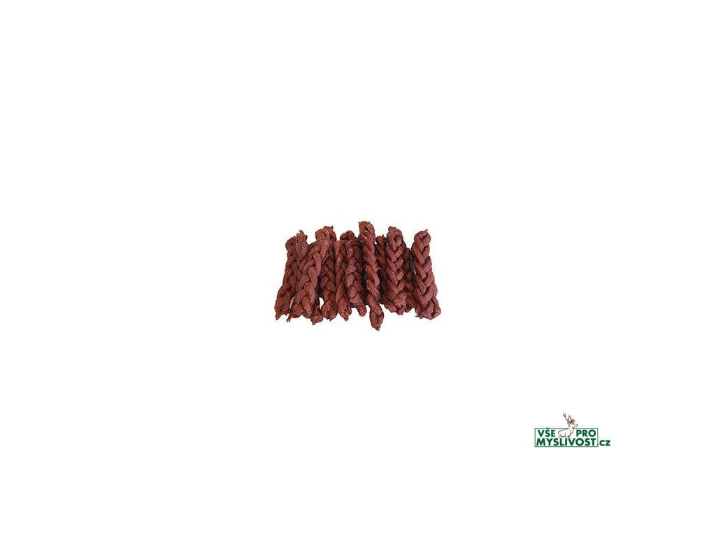 Masová pochoutka pro psy, pletenec z kachního masa.
