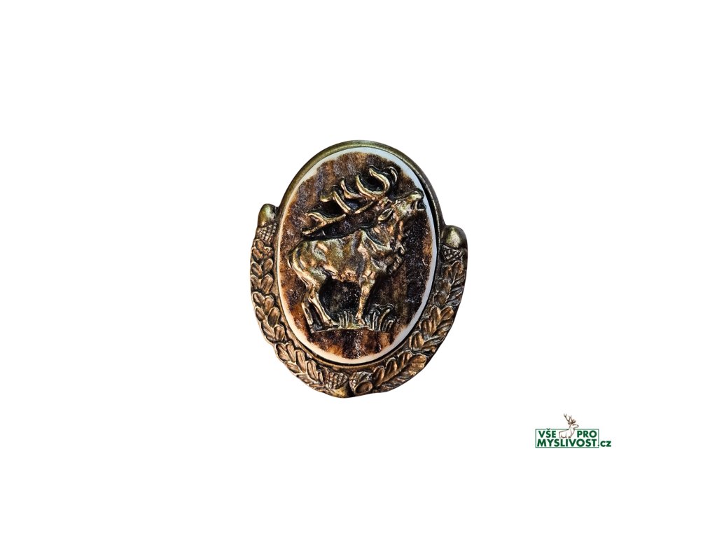 bolo z pravého parohu povrchová úprava motivu staromosaz bolo je včetně koženého pleteného řemínku, který je ukončen kovovými šiškami