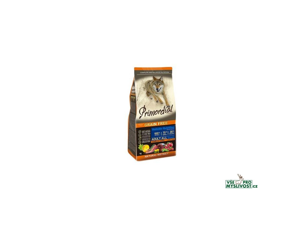 Primordial tuňák a jehněčí je kompletní bezobilné krmivo bohaté na proteiny vysoké biologické hodnoty a obsahuje vhodnou kompozici aminokyselin. Jehněčí maso, striktně z volného výběhu, poskytuje kompletní bílkoviny a atraktivní chuť, kterou psi milují. Tuňák nabídne snadno stravitelné bílkoviny a je bohatý na omega 3 mastné kyseliny, které vykonávají důležitou kosmetickou funkci pro kůži a srst a jsou velmi prospěšné pro kardiovaskulární systém (srdce a cévy). Ovoce a zelenina bohaté na vitaminy, minerály a fytonutrienty, trávicí vlastnosti ananasu, antioxidační funkce granátového jablka a šípku a podpora jater ze strany pampelišky dodávají tomuto krmivu dokonalou rovnováhu chuti a živin. Jedná se o skutečně holistický produkt, který aktivně přispívá k celkovému zdraví psa.