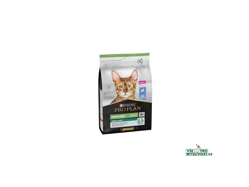Kompletní, vyvážené krmivo ProPlan Cat Sterilised pro mladé a dospělé kastrované či sterilizované kočky s králičím masem, se sníženým podílem energie. Vysoce stravitelná receptura ProPlan Sterilised je speciálně sestavena tak, aby zabraňovala přibírání na váze a ochraňovala močové cesty. Vysoký podíl bílkovin a vlákniny pomáhá snižovat riziko nadměrného ukládání tuků. Díky tvaru a struktuře granulí pomáhá předcházet tvorbě zubního plaku a kamene.