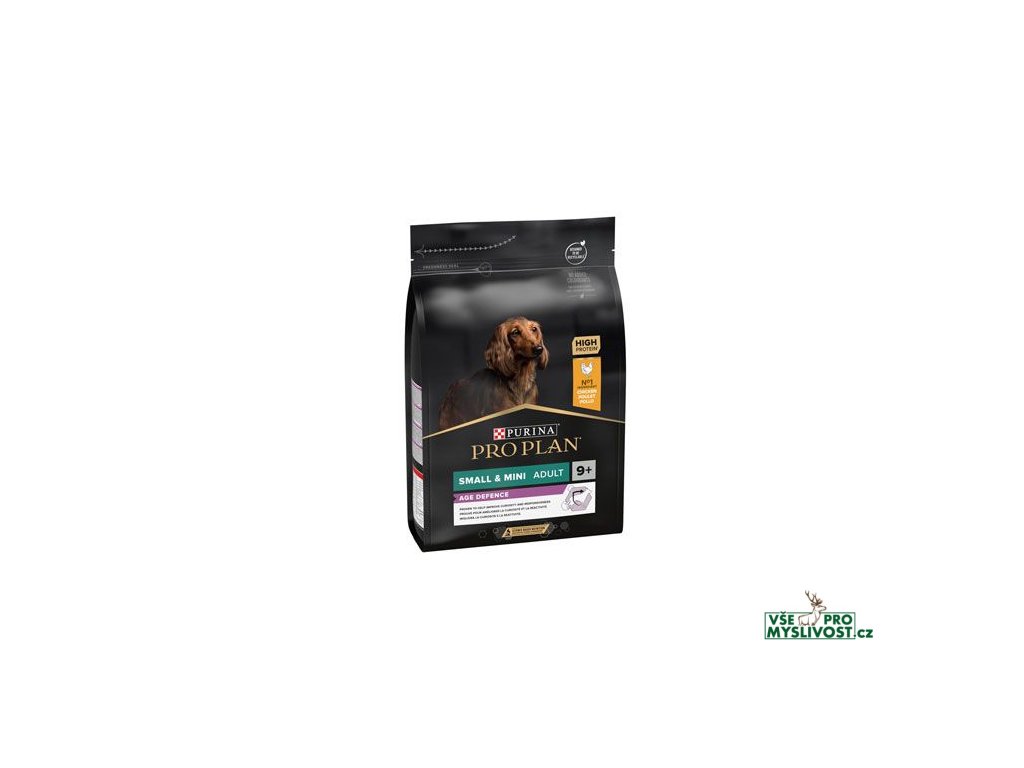 PRO PLAN® Small & Mini Adult 9+ s OPTIAGE® je kompletní krmivo pro psy malých a mini plemen starší 9 let. Krmivo s OPTIAGE®, vytvořené na základě nejnovějších vědeckých poznatků z oblasti výživy psů našimi veterináři a specialisty na výživu, obsahuje patentovanou* směs živin, včetně triglyceridů se středním řetězcem (MCTs 5.5%), která napomáhá psům starším 9 let zůstat aktivní a čilí po delší dobu. Také pomáhá zvyšovat zájem starších psů o hraní, takže si s nimi můžete užívat aktivní život co nejdéle.Pro výrobu krmiva používáme pouze vysoce kvalitní suroviny, které šetrně zpracováváme tak, aby si uchovaly co nejvyšší kvalitu a nutriční hodnotu. Granule, které se dají snadno žvýkat, jsou speciálně upravené pro malé tlamičky psů.