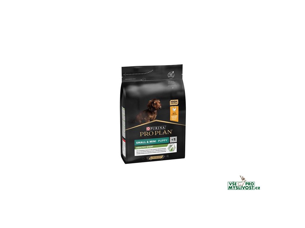Krmivo Purina PRO PLAN® Healthy Start SMALL&MINI PUPPY je vhodné pro štěňata malých a trpasličích plemen (s hmotností do 10 kg v dospělosti). Tyto granule pro štěňata obsahují vitamín D, minerální látky a specifické množství omega-3 mastných kyselin (0,4 %), které přispívají ke zdraví zubů a dásní. Krmivo má vysoký podíl kvalitního kuřecího, a tak zajišťuje optimální výživu pro rostoucí štěňata malých a trpasličích plemen. To vše až do věku 12 měsíců, kdy přejdou na produkty řady ADULT.
