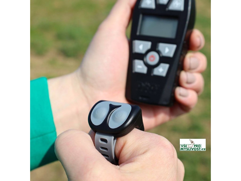 Věnujete se výcviku loveckého psa nebo se často proháníte se svou smečkou na kole či koloběžce? Teď už nemusíte řešit, kam s ručním ovladačem, ale můžete pohodlně komunikovat se svým pejskem pomocí miniaturního prstýnkového ovladače. Bezdrátová komunikace umožňuje vysílat signály z prstýnku do ručního ovladače až na 20 metrů.
