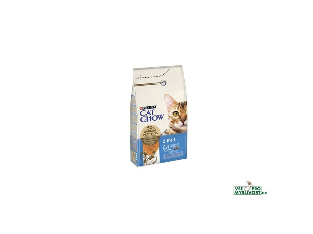 Cat Chow 3 in 1 s krůtím masem je nová receptura s třemi benefity – prokazatelně snižuje tvorbu zubního kamene až o 40%, vyvážený poměr minerálů pro zdraví močových cest a specifický obsah vlákniny, která omezuje tvorby smotků chlupů v žaludku a pomáhá jejich průchodu trávicím traktem.Neobsahuje umělá barviva