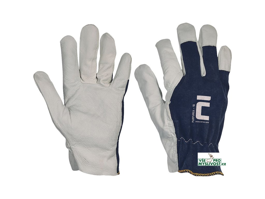 • šité rukavice z jemné kozinky v dlani • bavlněný úplet na hřbetu ruky • konce prstů kryté kůží