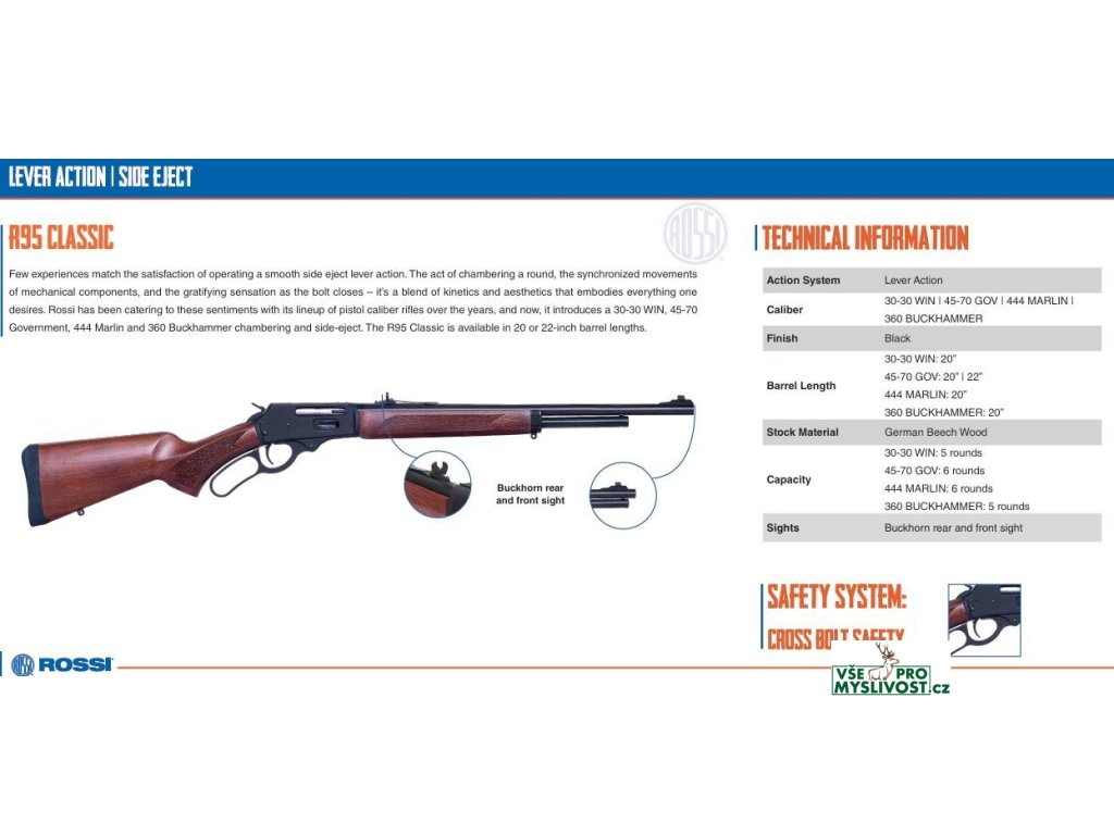 Puška opak. Rossi, Model: R95 Classic, Ráže: .444 Marlin, hl: 20" (508mm), 6 ran, černá