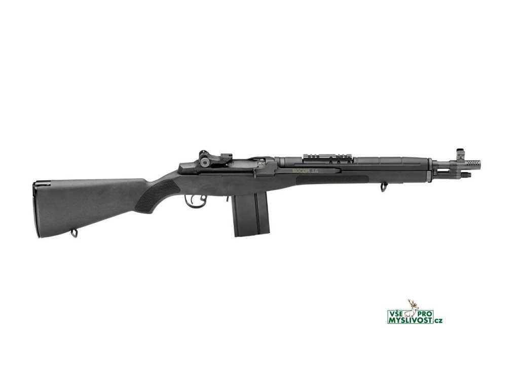 kompaktní verze legendární pušky M1A s 16,25" hlavní, úsťovou brzdou, kompozitní, černou pažbou, stavitelnými mířidly a základnou montáže tyou Scout pro Weaver/Picatinny