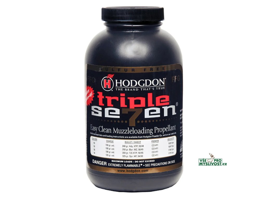 Revoluční puškový střelný prach Triple Seven® FFG je moderní granulovaný prach pro perkusní zbraně a nábojové použití, který kombinuje vysoký výkon s jednoduchou údržbou. Neobsahuje síru, takže při výstřelu nevznikají typické silné pachy a čištění zbraně po střelbě je možné i vodou — rychlé a bez zbytečného drhnutí. Vyrobeno v USA společností Hodgdon Powder Company.