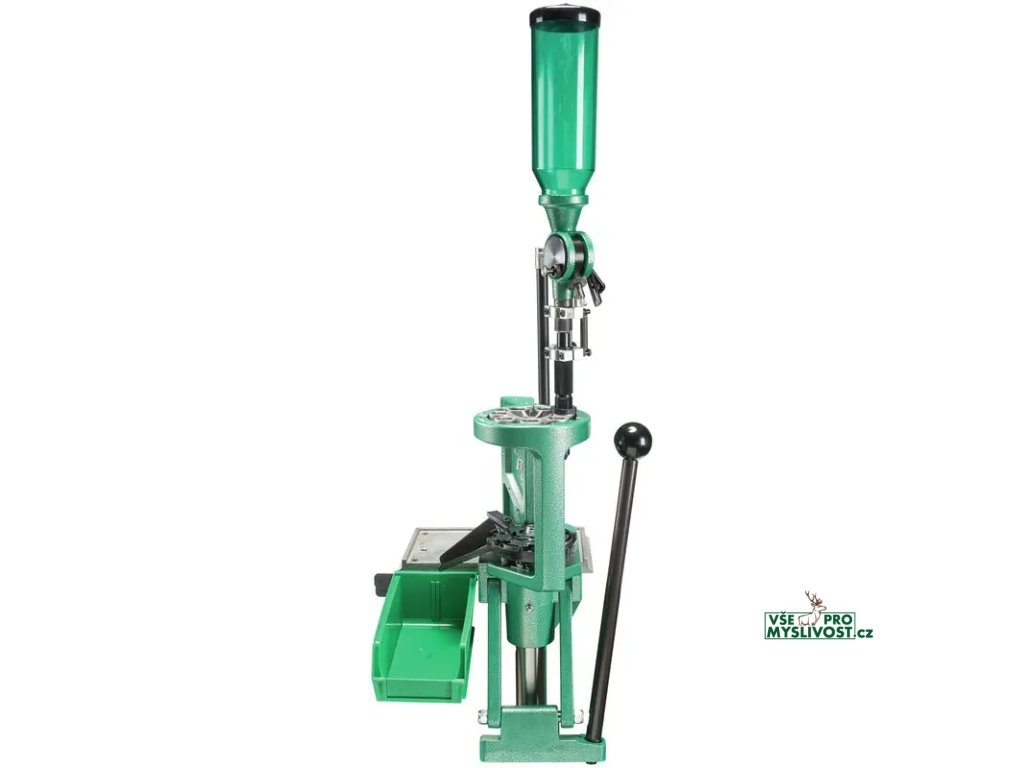 - Sedmistaniční automatické indexování pro maximální produkci, s rychlostí přibližně 600 nábojů za hodinu - Trubice na nabírání zápalek se používají s bezpečnostním systémem zápalek - Rychlá výměna matricové desky umožňuje rychlou změnu kalibru - Quick Change práškový zásobník - Odlévaný hliníkový rám s provozním oknem 4,625" - Zerk fitinka pro mazání - Nádoba na hotové náboje - Vyrobeno v U.S.A.