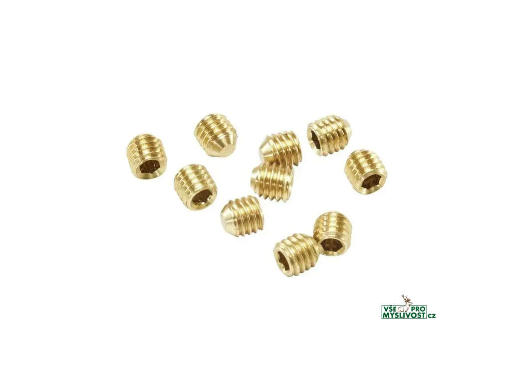 Toto balení 10 mosazných zajišťovacích šroubů umožňuje snadno nahradit opotřebené nebo poškozené šrouby a zajistit tak spolehlivé a pevné uchycení matric.
