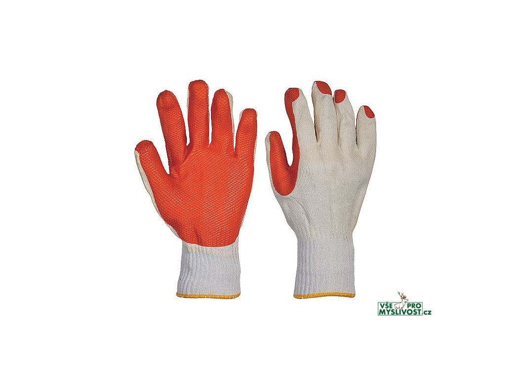 • pletené rukavice ze silné směsné příze polyester/bavlna • napuštěné latexem • s další silnou vrstvou latexu v dlani a na prstech • pružný náplet