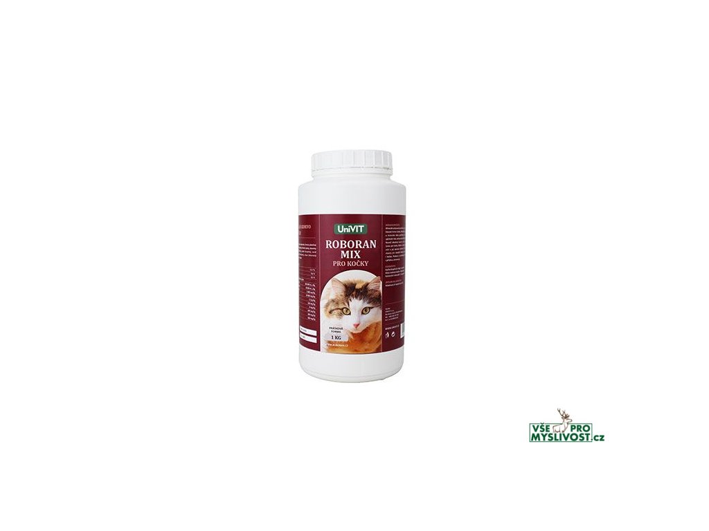 ROBORAN MIX je vitamíno-minerální přípravek pro kočky, který obsahuje všechny vitamíny a minerální látky potřebné pro optimální růst, zdravý vývin šlach, kloubů a kostry. Doplněný taurin je pro kočky životně důležitou živinou, kterou je třeba denně přidávat ke stravě. Vitamín H (biotin) a zinek podporují kvalitu srsti a její výrazné zbarvení. Je vhodný pro dospělé kočky, březí a kojící kočky i koťata. Podporuje zabřezávání koček a životaschopnost koťat.