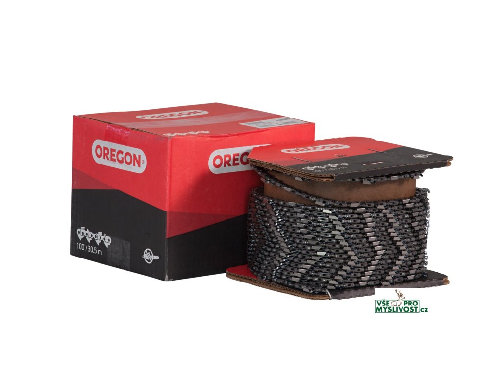 Role pilového řetězu OREGON PowerCut dlouhá 100stop (1637 článků) je vylepšenou verzí řetězu 73LGX. Řetěz 1,5 mm s dělením .3/8", hranatý zub je určen pro náročné profesionální použití.Vylepšený tvar řezacích zubů v porovnání se sérií řetězu LGX.Ostřejší a odolnější ostří zubů v porovnání se sérií řetězu LGX.Více-úhlová technologie ostření (nový řetěz nemusíte po vyndání z krabičky přeostřovat).LubriTecTM systém mazání. Méně tření, delší životnost.Optimalizovaný naklonění design omezovací patky. Bez nárazníku, nízký zpětný vrh, nízké vibrace.Prvky pro jednodušší údržbu: zlatý článek jako indikátor začátku / konce ostření, zdokonalené indikátory na horní ploše řezacího zubu pro přesný úhel ostření a značení maximálního použití - konce životnosti při ostření.Na dotek suché mazání z továrny. Méně špíny.Průměr pilníku 5,5 mm (7/32")