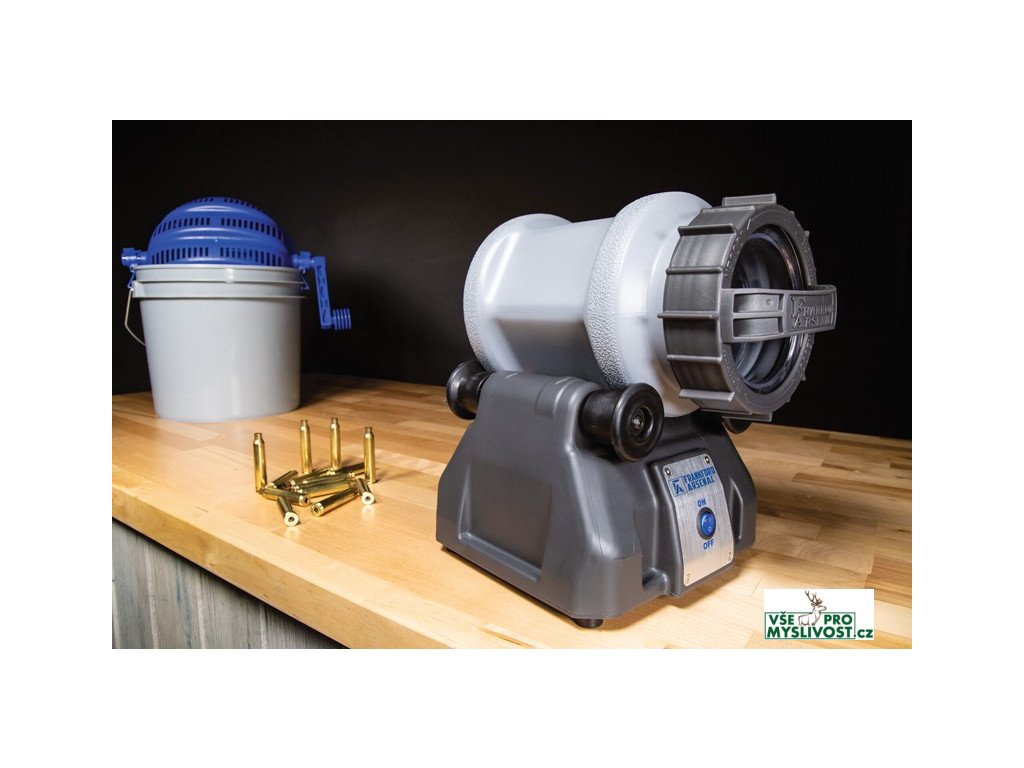 Rotační pračka Rotary Tumbler Lite pro praní nábojic od firem Frankford Arsenal Vám umožní čistit a přebíjet puškové i pistolové nábojnice zvenku i zevnitř. Oproti verzi Platinum Series, verze Lite nemá gumové obložení pracího válce (tlumí hluk, chrání nábojnice), odložený start a automatické vypnutí.