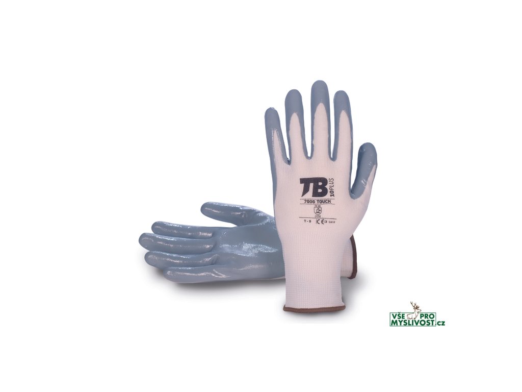 • bílé bezešvé nylonové rukavice máčené v šedém nitrilu na dlani a prstech • neobsahují silikon • pletená manžeta • hustota úpletu 13 GG